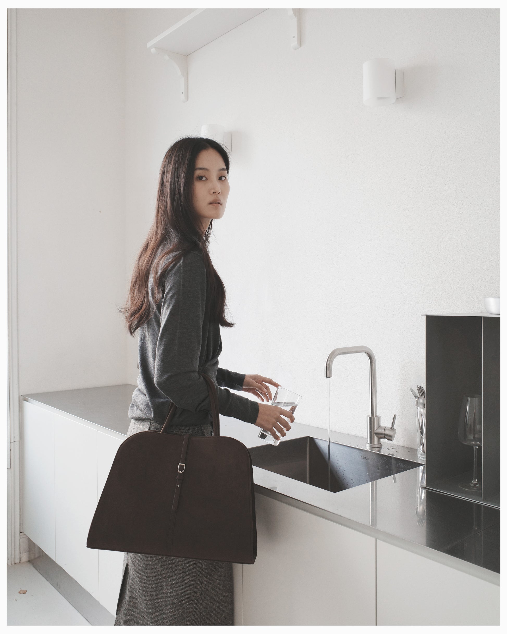 This is an oversized tote bag with a soft shape and wide design. It is a big bag characterized by its simplicity with a slim belt decoration and its lightness of 500g.