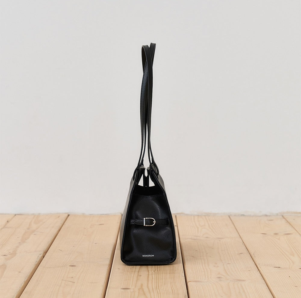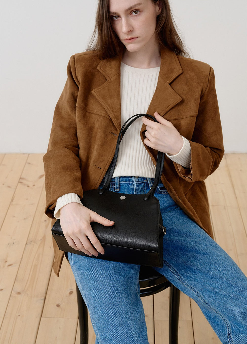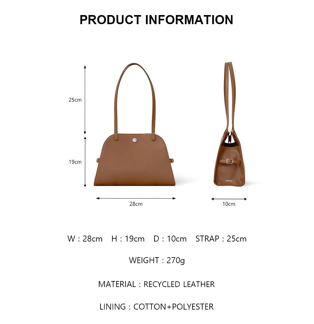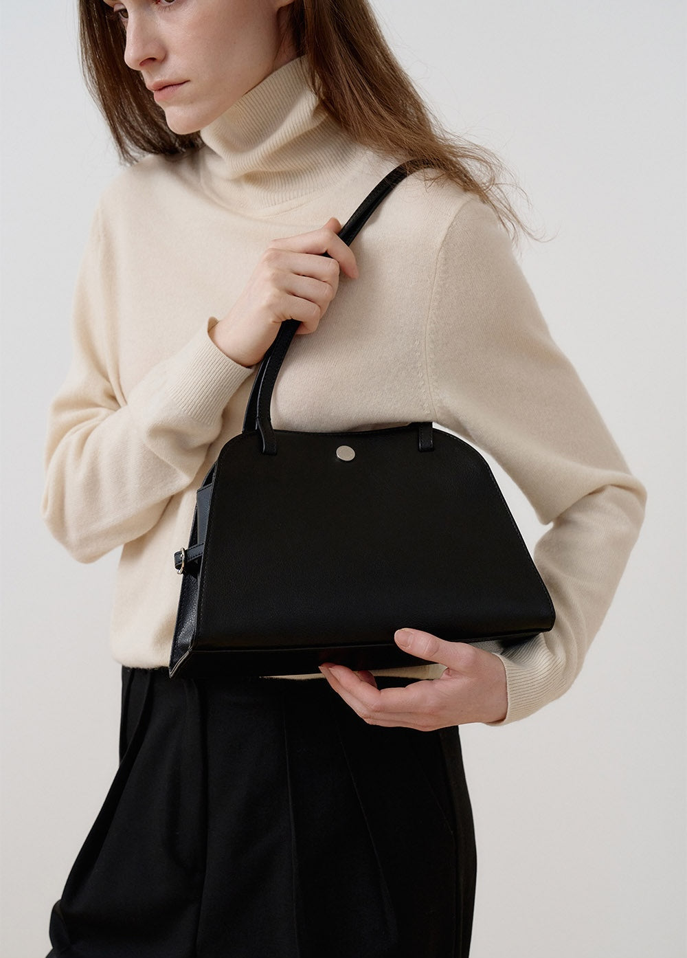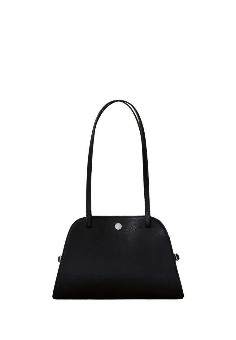 This is a sophisticated shoulder bag with a harmonious blend of soft curves and straight lines. Its basic design, combined with a comfortably long strap, enhances wearability, while minimal metal accents complete a sleek, polished look. The magnetic closure allows for easy and neat opening and closing, making it highly practical for everyday use.