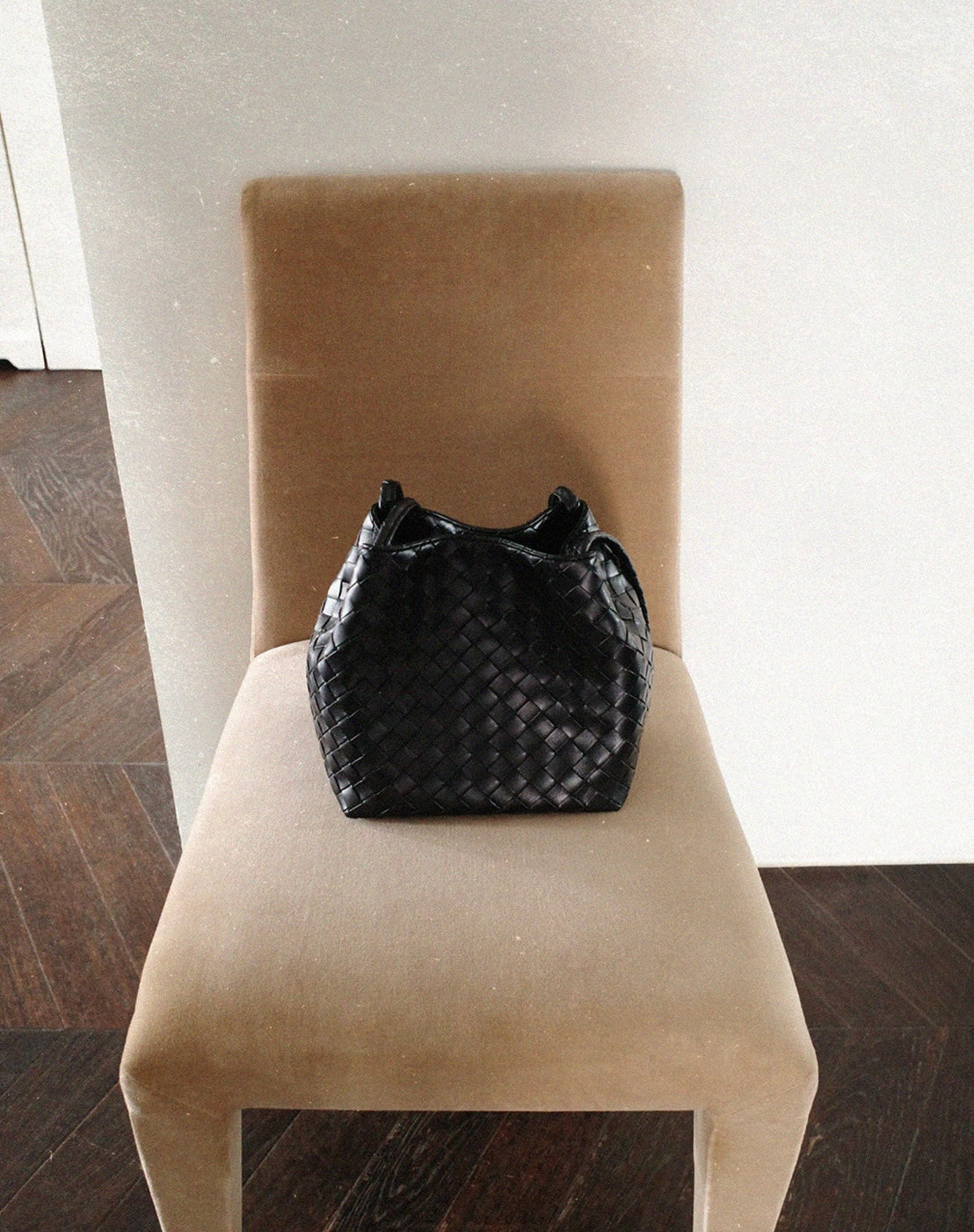 This minimalist daily shoulder bag captures the summer mood with its weaving pattern and flexible shape, blending harmoniously.